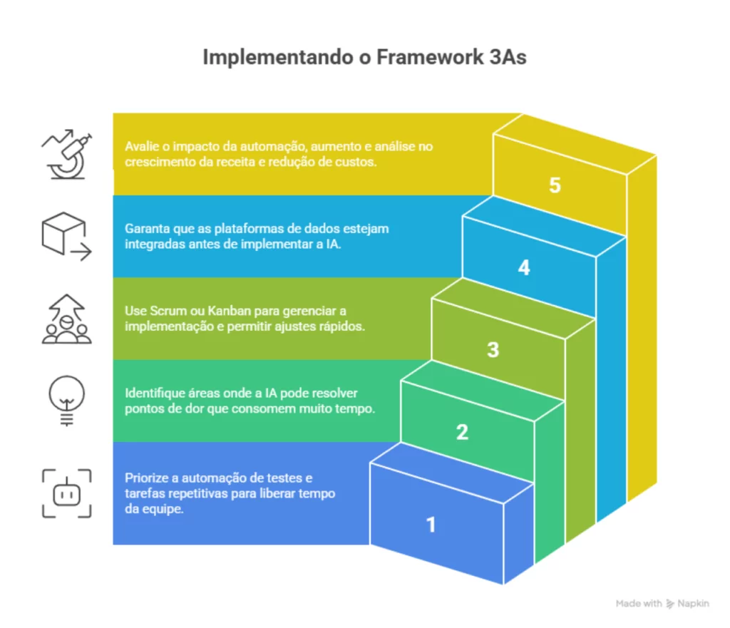 A implementação do framework 3As deve ser incremental e focada em resultados rápidos.
