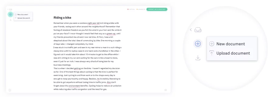 O Grammarly é uma ferramenta avançada de assistência para escrita, com foco na gramática. Ela utiliza IA para identificar erros gramáticas, melhorar a fluidez do texto e seu estilo, sugerir alternativas de vocabulário, ajustar o tom e até ajudar a detectar plágio.