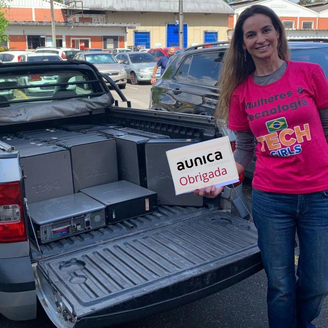 A fundadora do curso de mulheres e tecnologia conta emocionada: “eu trabalhei com estes computadores em São Paulo na consultoria aunica. Agora foram entregues como doação para serem ferramentas de trabalho para as alunas da Tech Girls. Antes delas levarem para suas casas, passarão nas mãos das alunas do curso manutenção de computadores, que estão recebendo formação em assistência técnica. Muito obrigada por ajudarem a fazer mais este capítulo da história das Tech Girls”, Gisele agradece a antiga empresa que trilhou carreira por 3 anos quando era gerente de área de business intelligence.